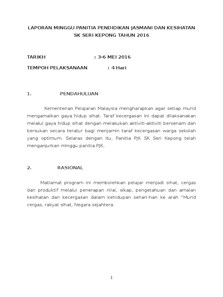 Laporan Minggu Panitia Pendidikan Jasmani Dan Kesihatan Sk Seri Kepong Tahun 2016 Pdf